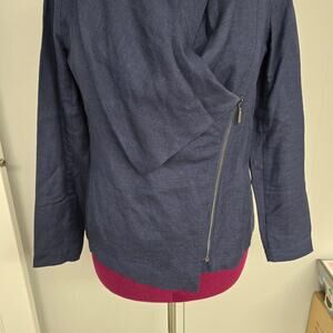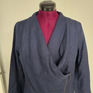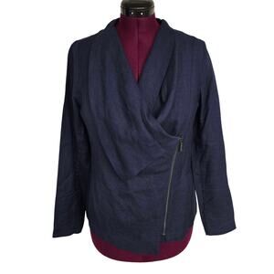 Women's H by Halston Navy Blue Linen Blend Zip Lightweight Jacket Blazer Size 10