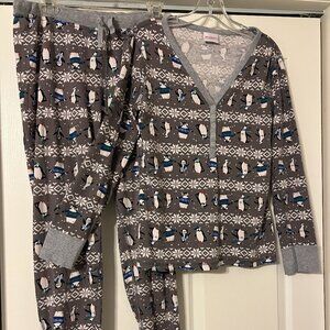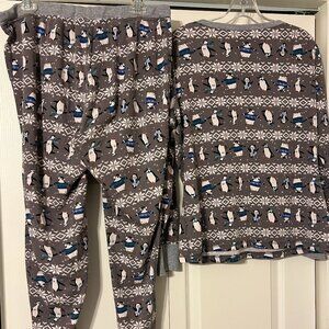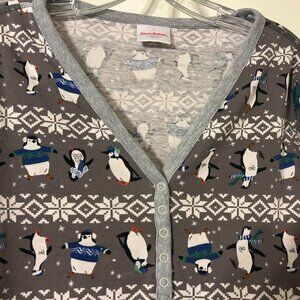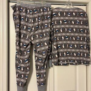 Womens HANNA ANDERSSON Sz L Gray Penguin Christmas Pajama Set