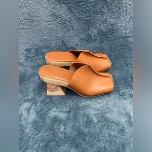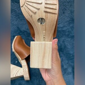 Women’s HILOS Grace clog in tan size 6 chunky leather 3D printed summer platform