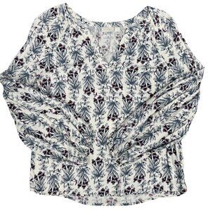 Women's HINGE Nordstom's Balloon Sleeve V-Notch Floral Top- Size Small