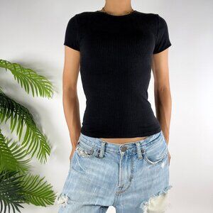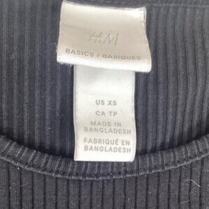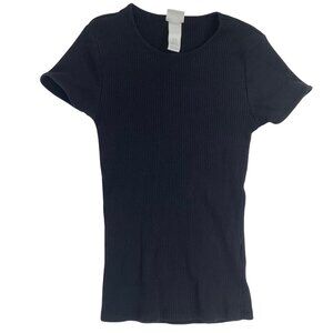 Womens H&M Basics Black Ribbed Short-Sleeve T-Shirt Casual Comfy Fitted Top / XS