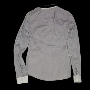 Women's H&M Button-Up Long Sleeved Dress Shirt, Gray with White Cuffs, Size 2