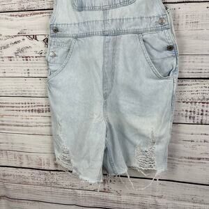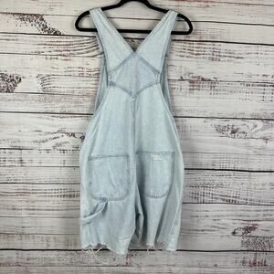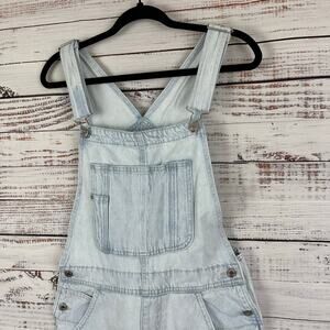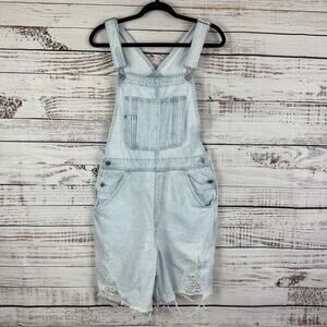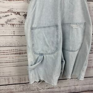 Womens H&M & Denim Light Wash Distressed Ripped Carpenter Bib Jean Overalls Sz M
