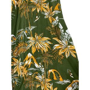 Women’s H&M Island Tropical Sun Dress Size 2 Green 5365 Volcano Palm Tree Midi