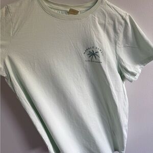 Light green tee with palm tree design. Size: women’s medium Condition: great, worn once