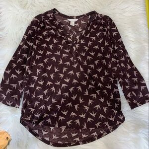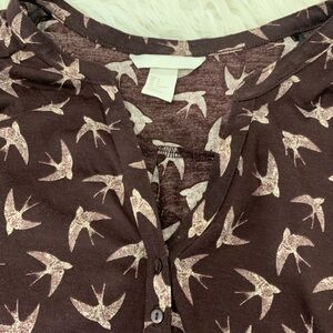 Women’s H&M Long Sleeve Thin Fabric from Bangladesh Brown with Bird Decorative in lay. Soft Fresh fabric. Gently Worn Size S (78)