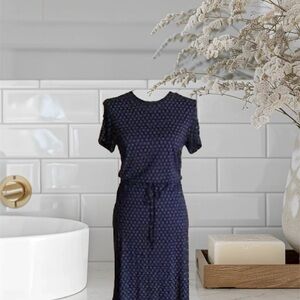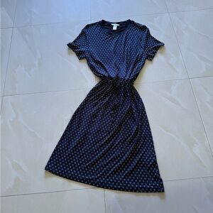 Women's H&M Polka Dot Printed Navy Flutter-Sleeve Dress Size M Spring Midi