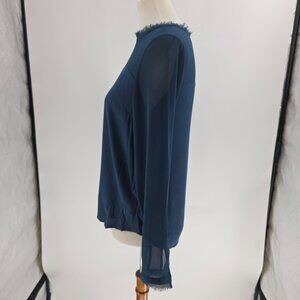 Womens H&M Sheer Long Sleeve Blouse With Frayed Edges