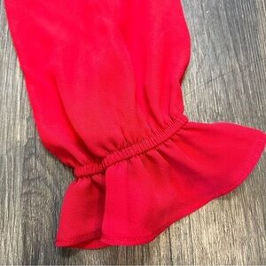 Super cute vibrant red off the shoulder front Ruffled long sleeves top. Elastic waist band. Adjustable straps. Tag has been cut off but it’s a size 4 ( please see measurements)