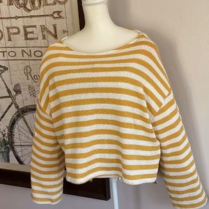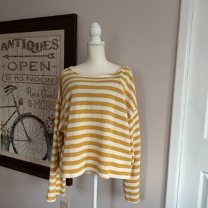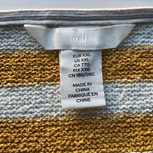Women’s H&M yellow and white knit, baggy cropped thick striped sweater, SZ XXL