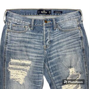Women's HOLLISTER Distressed Low Ankle Button-fly Boyfriend Jeans- Size 7/28