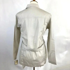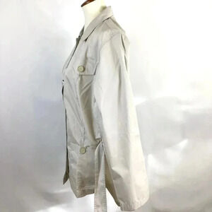 Classic, versatile piece by Haband in women's size large. Left and right breast mock pockets, patch pockets at hips on both sides, too. Sash-style belted waist and princess seaming to create a more flattering feminine silhouette. Collared.