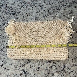 Womens Half Moon Flap Woven Raffia Envelope Clutch Tan Size 12"x 8.5"