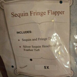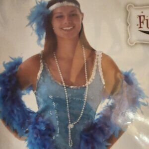 Sequin Fringe Flapper Costume includes Fringe Dress and Silver Sequin Headband with Flower Tuft--Aqua Blue