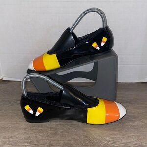 Women's Halloween Edition Black Orange Candy Corn Flats Shoe Slip On Size 8 XL