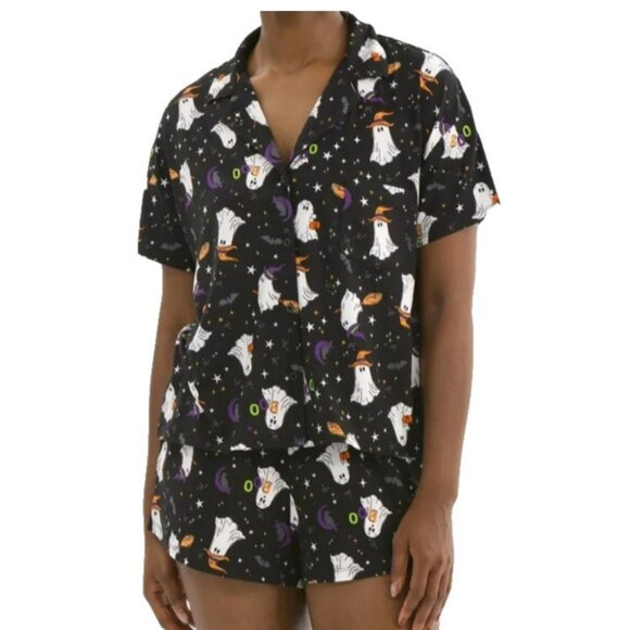 Womens Halloween GHOSTS Pajama 2 Piece Set Top & Shorts Large