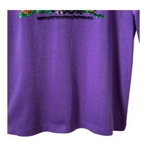Women's Halloween T-Shirt LARGE Purple Haunted House Beaded Sequins Long Sleeve