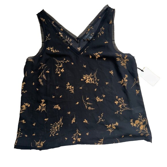 Women's Halogen Floral V-neck Semi Sheer Sleeveless Tulle Trim Top Size M