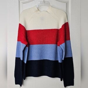 Women's Halogen Funnel Neck Colorblock Sweater Blue Blossom Combo
