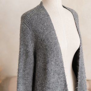 Open front, long, gray cardigan. Wool blend. Pre-owned condition with normal wash and wear. Please see video for most accurate color/condition representation. Pet friendly, smoke free home.