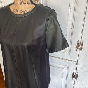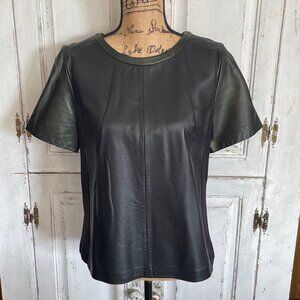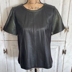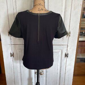 Women's Halogen Short Sleeve Black Leather & Fabric Shirt Size M