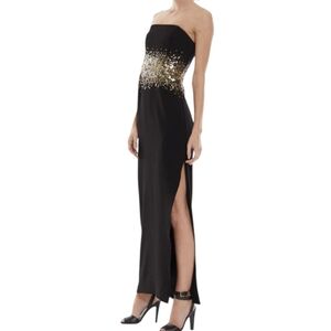 Women's Halston Sofi Gown Columm Crape Strapless Black Dress Gold Sequins 12