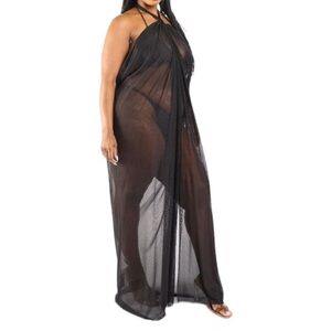 Women's Halter Front Slit Beach Maxi Cover Up Swimwear Polyester/Spandex