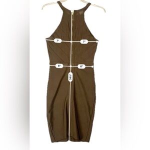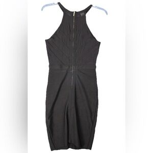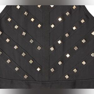 Womens Halter Neck Caging Stud Mesh Bandage Black Gold Dress sz XS Sexy Mini