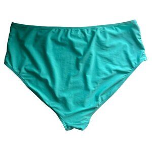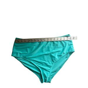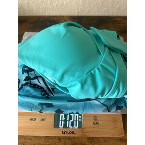 A vibrant XXL women's 2 piece swimsuit dress with a halter neck design, showcasing a wonderful turquoise butterfly print. Made of 82% polyester and 18% spandex, it ensures a comfortable, stretchy fit. In great condition.
