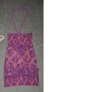 Womens Halter Tunic Mudd Purple Large Braided Straps Tie Dye Banded Hem Stretch