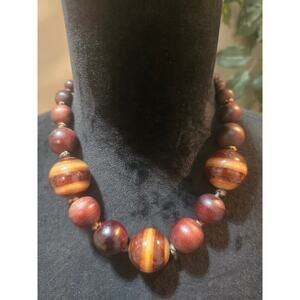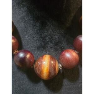 Women's Handcrafted Wooden Bead Necklace With Floral Button Loop Lock