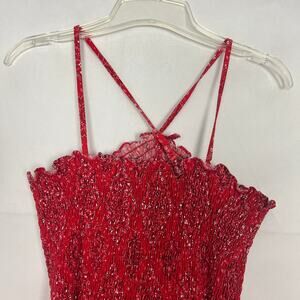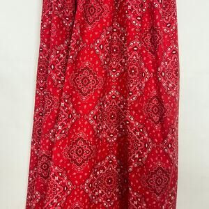 Women's Handkerchief Print Smocked Red Maxi Dress Size S/M