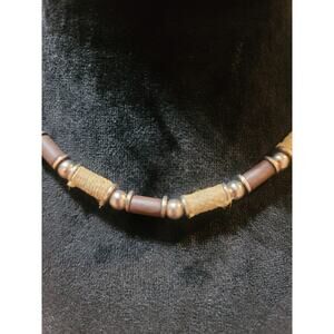 Women's Handmade Beaded Necklace With Wooden Tubes Rope Accents And Lobster Lock