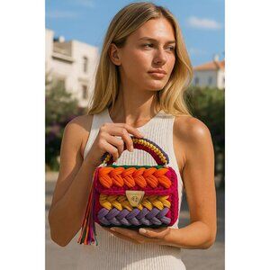 πππππππ ππππππππ πππππ: Handmade crocheted bag made of premium T-shirt combed yarn with cottons. Because it is made of cotton, our products are completely friendly to the environment and people. Also it has metal chain strap and also twisted lock. Since the threads used are recycled threads, there may be minimal differences in the color tone and size of the capri bag in the image.