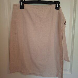 Women's Handmade Tan Linen Wrap Skirt, M