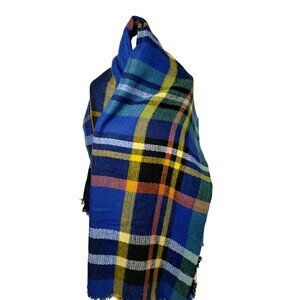 Womens Handwoven Multicolor Plaid Wool Blend Blanket Shawl