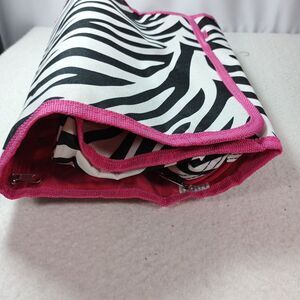 Womens Hanging Toiletry Travel Bag Zebra Stripe Pink Interior Organizer