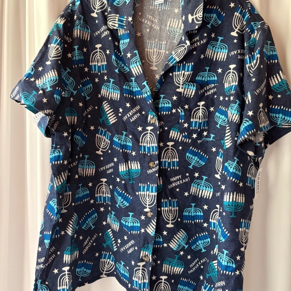 Women's Happy Hanukkah Glow In The Dark Short Sleeve Pajama/Shirt Top XL w tag