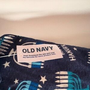 his Women's Happy Hanukkah Glow In The Dark Short Sleeve Pajama Shirt Top in XL size features a festive Menorah pattern in blue and white colors, perfect for celebrating the holiday. Made of 100% cotton flannel, it is lightweight and comfortable for a good night's sleep. The collared neckline and button closure add a stylish touch to this pajama top, while the glow in the dark feature adds a fun and unique element. Machine washable for easy care, this pajama top from Old Navy is a delightful addition to any woman's sleepwear collection.