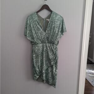 Women's Harlyn Mint Blue Sequin Dress XS Faux Wrap Front Cocktail Formal