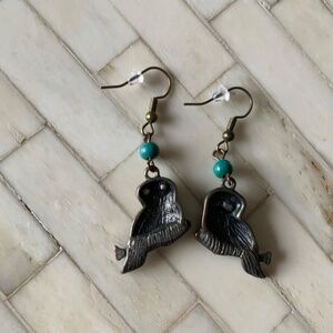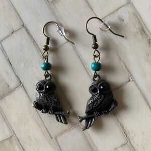 Owl earrings. Approximately measurements: 2x 0.8 inches. Good pre-owned condition with vintage patina.