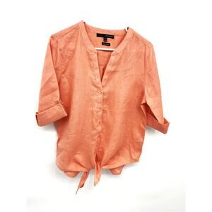Womens Harve Benard Pure Linen Skipper Collar 3/4 Sleeve Top Front Button Sz M