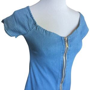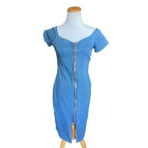 Womens Haute Monde Double Time Chambray Denim Zip Front Detail Dress - Sz M