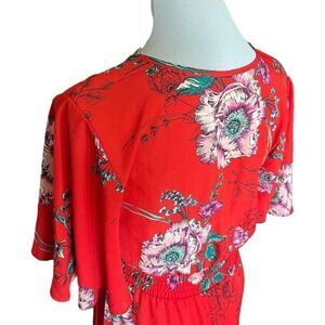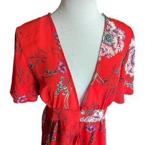 Womens Haute Project LA Red Floral Print Deep V Dress Hi-Lo Top - Sz S