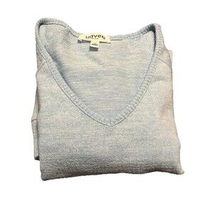 The Women's Haven Well Within Shirt is a lightweight sweater from the brand Haven, designed specifically for petites. Made of a comfortable polyester blend, this solid blue shirt is perfect for the winter, fall, and spring seasons. It is a versatile top that can be styled in various ways to create different looks while keeping you warm and cozy.