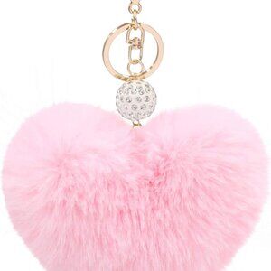 Women's Heart Faux Fur Pom Pom Key Chains Bag Accessory Puffball Keyring Backpac