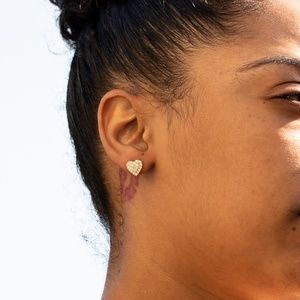 Stylish Sleek and eye-catching stud earrings feature glistening heart-shaped CZ stone secured by a screw back post. These beautiful dainty iced honey comb set heart earrings are the height of elegance and simplicity, they are very small and simple, easy to put in and to take off