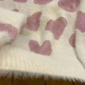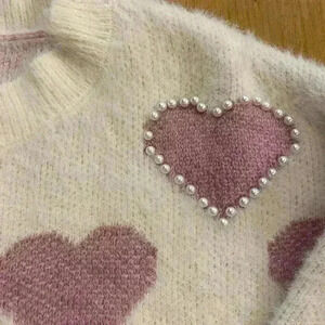 Womens Heart Pink Cream Pearl Crewneck Pullover Soft New Sweater large