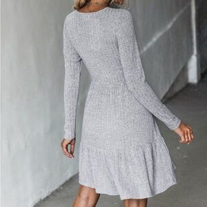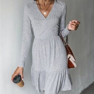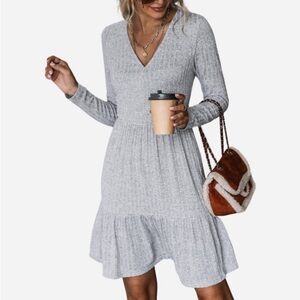 Women's Heathered V Neck Long Sleeve A Line Mini Dress --M-Gray n…