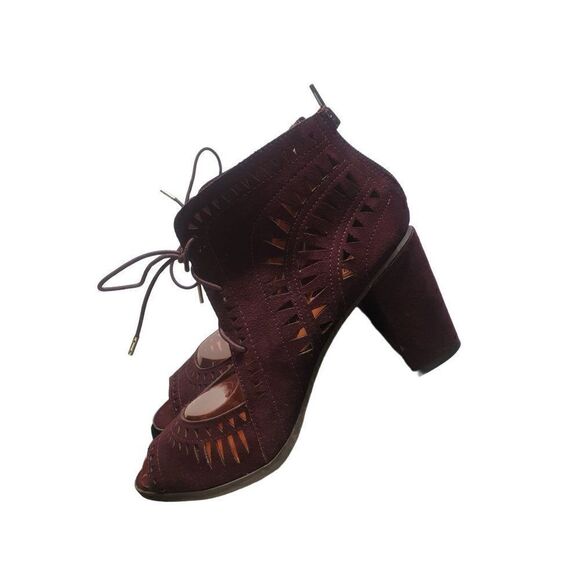 Women's Heeled Sandals Cutout Lace-Up Suede Chic Burgundy Pumps 7.5